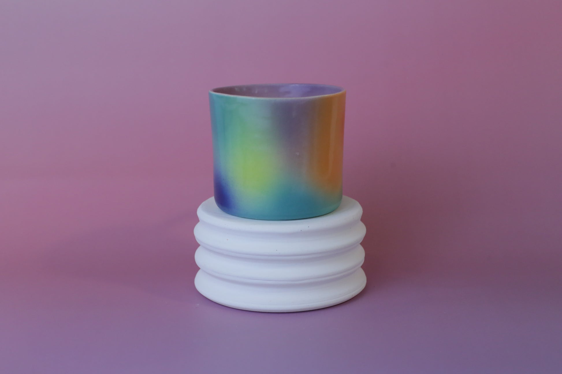 Rainbow cup with blue handle